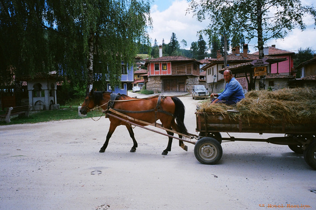 그녀가 저 길을 따라 가 보라고 손짓했다. 그녀가 알려준 오솔길을 따라 언덕을 걸었다. 마을을 사이에 두고 꼭 닮은 언덕이 마주하고 있었다. 한참을 걷다 보니 거대한 기마동상이 나타났다. 아마도 그녀가 보라고 한 것이 이것이었나 보다. 동상의 주인공은 게오르기 벤코브시키로 오토만에 대항한 4월 봉기의 사령관이었다. 코프리브쉬짜에서 태어나 이곳을 위해 싸우다 이곳에서 죽은 그는 죽고 나서 불가리아 국민의 영웅이 되었다고 한다. 국민의 영웅을 지나 마을로 내려오니 몇 군데의 주택 박물관이 나타났지만 박물관을 구경하기에 햇살이 아까운 날이었다. 박제된 박물관 대신 살아있는 마을을 실컷 보고 싶었다. 마을 중앙을 흐르는 개천과 나란한 큰길을 따라 걸으며 마을이 끝나는 곳까지 갔다가 다시 돌아와 마을의 이 골목 저 골목을 걸었다. 딸각딸각 말발굽 소리와 함께 찰랑찰랑 방울 소리를 내며 들썩들썩 몸을 흔드는 나이든 농부를 싣고 마차가 지나갔다. 자동차보다 마차가 더 흔한 동네였다. 마을 광장에는 기념품 가게와 레스토랑, 카페들이 있었는데 길가다 만난 동네 주민 둘이 짧은 대화를 마치고 사라지자 넓은 광장은 금새 텅 비었다. 광장 뒤쪽으로 넒은 잔디밭을 가진 문화센터가 있었고 그 옆으로 작은 무대와 함께 벤치가 놓여 있었다. 코프리브쉬띠짜에서는 5년 마다 큰 규모의 전통 문화 축제가 열린다고 했다. 전국에서 모여든 사람들이 전통 복장을 하고 언덕에서 춤을 춘다고 하니 상상만으로도 근사한 일이다. 하여간 이렇게 예쁜 산골마을은 생전 처음 보았다. 주택 박물관 건물이 아니더라도 작은 골목을 따라 부드러운 색으로 칠해진 가옥들이 줄지어 서 있었다. 마을 북쪽에 있는 남보라색의 '성모승천교회'를 구경한 후 다시 언덕으로 향했다. 조지아의 코카서스 산맥의 작은 마을 스테판츠민다에서 내가 바랐던 것이 이곳에 다 있었다. 그곳에서는 좋지 않은 날씨와 그보다 더 좋지 못했던 몸 상태 때문에 우울하기 짝이 없었는데, 내가 그렇게나 좋아하는 아름다운 자연 속을, 그것도 풀 뜯는 말 사이를 누비고 다니다니 정말이지 머리에 꽃이라도 꽂고 싶은 기분이었다.
