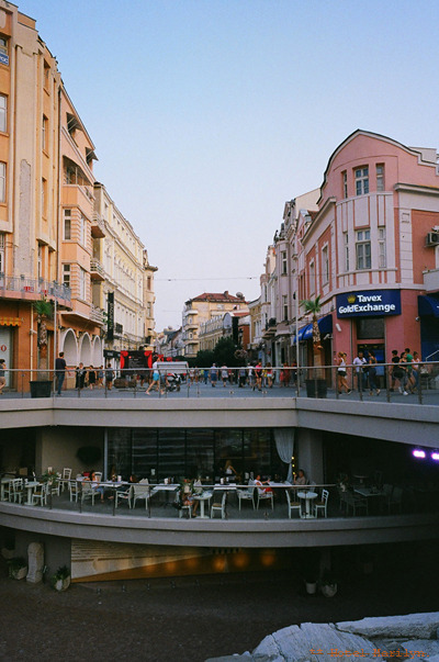 플로브디브에 도착했을 때는 하루 중 가장 뜨거운 시간이었다. 여름 휴가철 관광 도시에서 빈방을 찾기란 쉽지 않았고 주차 자리를 찾는 일은 그것보다 더 어려웠다. 큰일을 해결하고 나니 후끈한 태양은 도시 사이사이에 불쏙 솟은 언덕 위에 걸려 우리가 거리로 나섰을 때는 초저녁 산들바람이 기분 좋게 불고 있었다. 보행자거리는 그사이 공사를 마치고 완전히 정리된 모습으로 활기에 넘쳤다. 수많은 관광객들이 손에 손에 아이스크림을 들고 거리를 걷고 있었고, 믿을 수 없을 정도로 날씬한 젊은 엄마들이 향수 냄새를 풍기며 유모차를 끌고 우리 옆을 지났다. 여느 도시에 비해 플로브디브의 인상은 눈에 띠게 젊었다. 지팡이를 짚거나 보행기를 끌며 걷기에는 거리에서 울리는 음악도 쇼윈도에 걸린 속옷도 하여간 요란했으니까.
