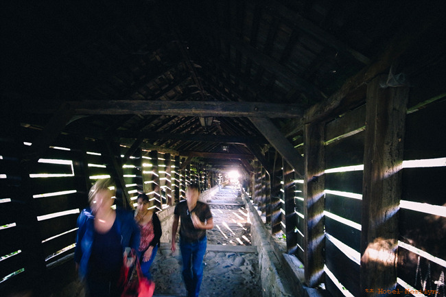 성채의 서쪽 ‘밧줄 제작자의 탑’의 성벽을 따라 언덕을 내려왔다. 성채는 정말이지 아담해서 지도를 보고 건물의 개수를 셀 수 있을 정도였다. 끝에서 끝까지 300미터는 되려나 싶었다. 우리는 ‘계단 거리('학생 계단'으로 이어지는 길이다)’와 기념품 가게들이 모여있는 ‘오리 새끼 광장’을 지나 지금은 레스토랑으로 쓰이고 있는 드라큘라의 모델 체페슈의 생가를 슬쩍 보고 시계탑으로 향했다. 시계탑의 첫인상은 정말이지 근사했다. 나지막한 집들뿐인 좁은 골목을 나와 갈림길에서 이쪽 저쪽 고개를 돌렸는데 느닷없이 저 앞에 우람한 시계탑이 우뚝 서 있는 것이었다. 수컷 공작새의 꼬리처럼 여러 색으로 조합된 시계탑의 지붕은 특히 아름다워서 투박한 탑의 몸통과 비교되어 더욱 돋보였다. 시계탑의 전망대에 올랐다. 입장료를 내야 들어갈 수 있었지만 발칸 여행을 통틀어 입장권을 사느라 쓴 돈이 아깝지 않은 몇 안 되는 곳 중 하나였다. 사방으로 트인 전망대에 오르니 성채는 물론이고 성채 밖 도시의 모습까지 한눈에 들어왔다. 도시를 흐르는 강, 강변의 커다란 교회, 그 교회 너머 동산 아래의 집들까지 모두 보였다. 우리는 전망대를 뱅글뱅글 돌며 경치를 구경하느라 서로를 몇 번이고 놓치고 말았는데 언제나 그렇듯 남편이 먼저 나를 찾아 나섰다. 어쨌거나 우리는 이 날도 시계탑 위에서 수많은 집들을 내려다보며 이런 대화를 했던 것 같다.