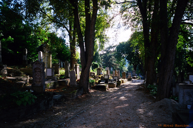 우리는 ‘담벼락 거리’를 따라 ‘양복장이 탑’, ‘방직공 탑’, ‘모피 제작자 탑’, ‘도살업자 탑’을 구경한 후 17세기에 지어진 ‘학생 계단’을 통해 성채 가장 높은 언덕에 올랐다. 언덕 위에는 ‘언덕 위의 교회’라는 이름의 거대한 교회가 있었고 아니나 다를까 그 옆에는 ‘아주 오래된 학교’라는 이름의 아주 오래된 학교도 있었다. 175개의 '학생 계단'을 기어 오르며 올망졸망하고 알록달록한 요새 도시 전체를 내려 볼 수 있을 거라 기대했지만 언덕 위 교회를 둘러싸고 있는 무성한 나무들에 가려 아무것도 보이지 않았다. 하지만, 입장료를 내야 들어갈 수 있는 교회를 지나쳐 교회의 뒤편으로 나가니 한눈에 보아도 오래된 묘지가 층층이 만들어진 계단식 논처럼 경사진 비탈을 따라 끝도 없이 펼쳐져 있었다. 고요하고 평화로웠다. 짙은 나무를 헤친 빛줄기가 오래된 묘비 위에 따사롭게 내려앉았고 젖은 낙엽 냄새를 안고 불어온 미풍에 묘비 사이사이 웃자란 잡초들이 부드럽게 춤을 추었다. 시기쇼아라에서 가장 아름다운 곳이 그곳이었다. 온갖 색으로 치장한 산 자의 마을 위에 온통 흙빛뿐인 죽은 자의 무덤.