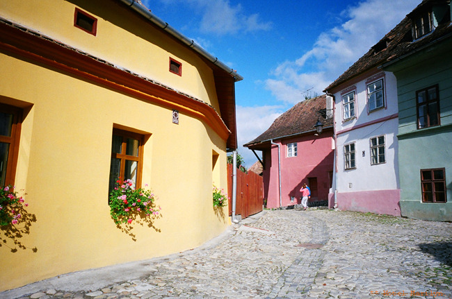 트란실바니아가 헝가리의 지배 하에 있던 12세기, 헝가리 왕은 색슨(작센)족 장인과 상인들에게 저 아래 남쪽 사람들이 쳐들어 오지 못하도록 지금의 시기쇼아라에 도시를 만들어 지키게 했다. 도시는 언덕 위 성채와 언덕 아래 트르나바 강변에 지어졌는데 언덕 위 성채 안의 집들은 협소한 부지 탓에 조밀한 형태로 지어졌고 성채 밖 집들은 언덕의 경사면에 흘러내리듯 자리 잡았다. 색은 다르지만 한결 같은 색조로 칠해진 앙증맞은 집들이 줄지어 늘어선 골목을 걸으며 이런 의문이 들었다. 외벽에 페인트를 칠할 때 반드시 섞어야 하는 흰색 페인트의 양이 정해져 있을까? 아니면 도시 전체의 페인트칠을 도맡아 하는 페인트공이 있을까?