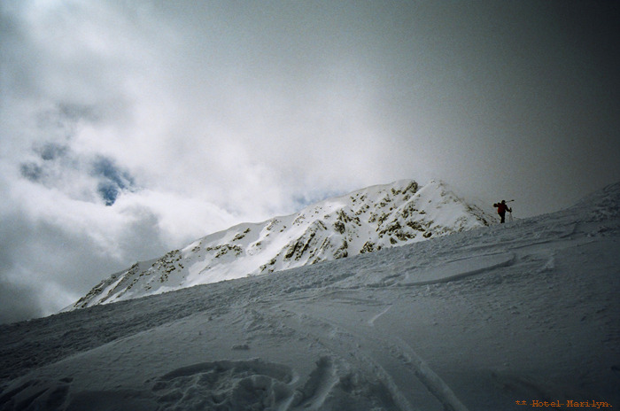 이들은 전혀 다른 species. 2500m에 만족하지 못하고 리프트가 닿지 않는 더 높은 곳을 향해 스키를 둘러업고 올라간다.