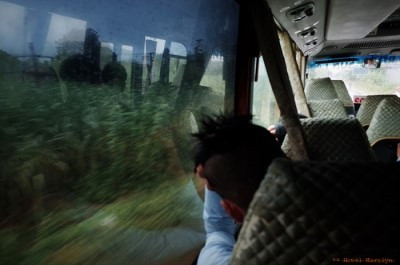 마이쩌우에서 6km 떨어져 있은 교차로에서 탄다. 우리의 마이쩌우 밸리 뷰 아저씨가 차로 교차로까지 태워 주었고, 함께 차를 타고 간 일꾼 아저씨가 비 오는데 차 밖에 서 있다가 지나는 버스를 잡아 주었다. 버스에 오르자 차장이 한사람당 20만동이라고 했고, 내가 버티니 두 사람에 30만동을 달라고 했다. 마이쩌우 밸리뷰 아저씨에게 전화를 걸어 일러 바쳤고, 아저씨가 버스 운전기사에게 전화를 걸어 호통을 쳤다. 아.. 베트남.
