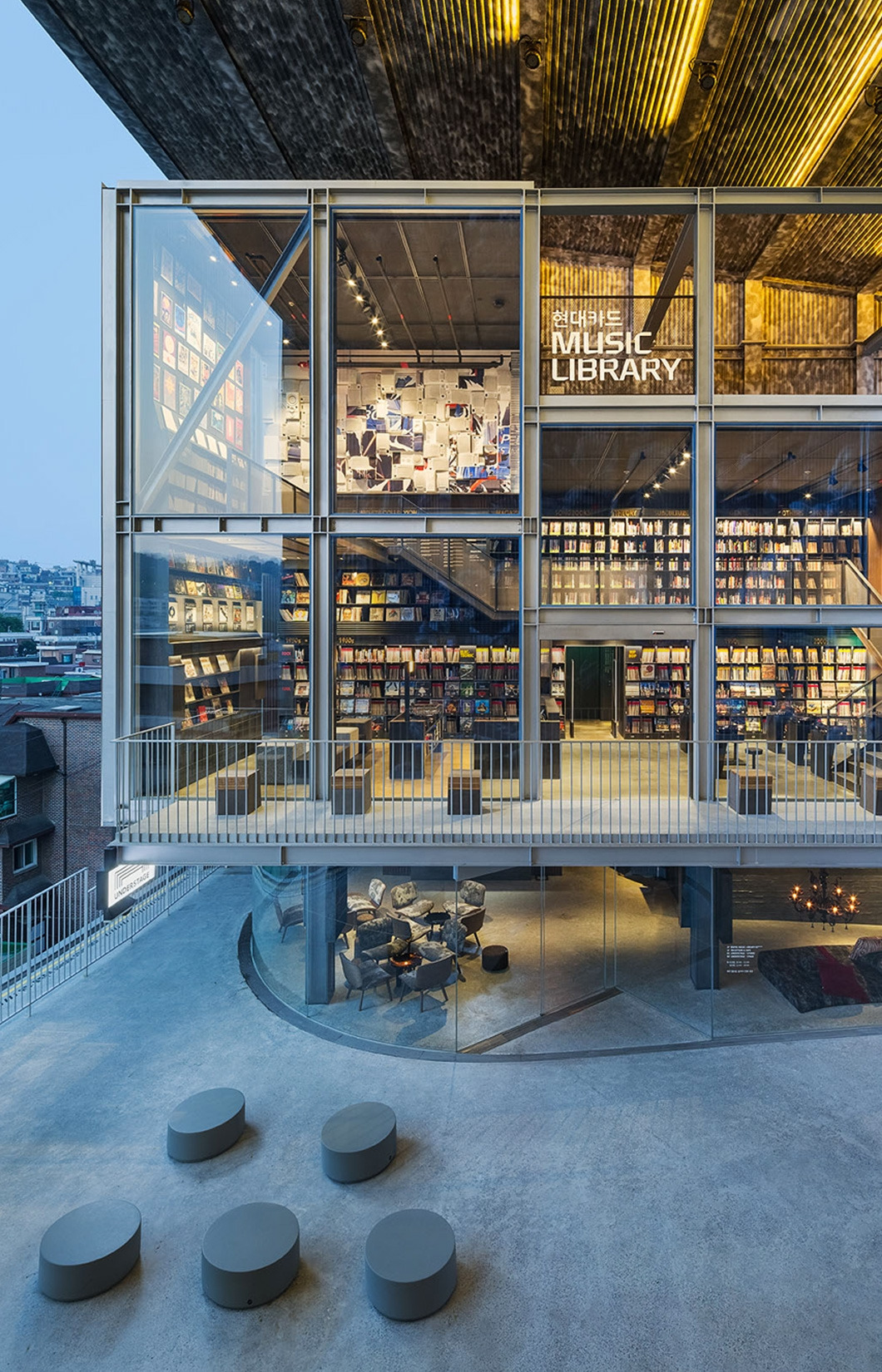 한남동 근처에 내리면 여기가 서울이야? 싶을 만큼 이국적인 현대카드 뮤직 라이브러리의 외관에 놀라게 될 것이다.