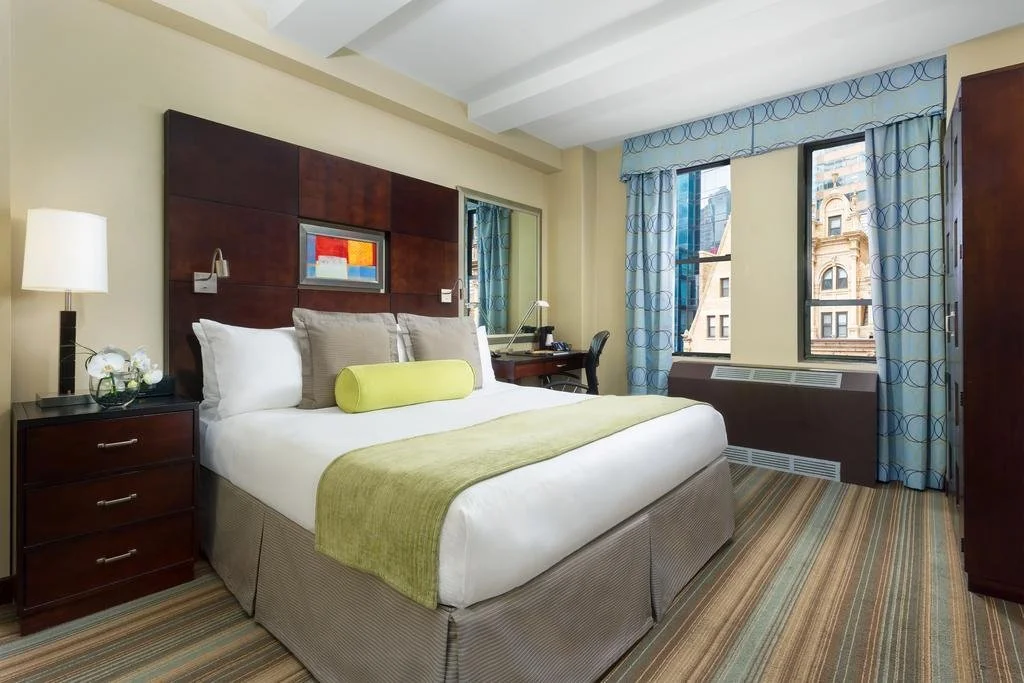객실 내에서 조리와 식사가 가능해 관광객들에게 인기가 높은 레지던스호텔로 비싼 물가를 자랑하는 뉴욕에서 식비를 절감할 수 있는 호텔이랍니다. N, Q, R 노선의 타임 스퀘어 - 42 스트리트 역에서 도보 3분 거리입니다.