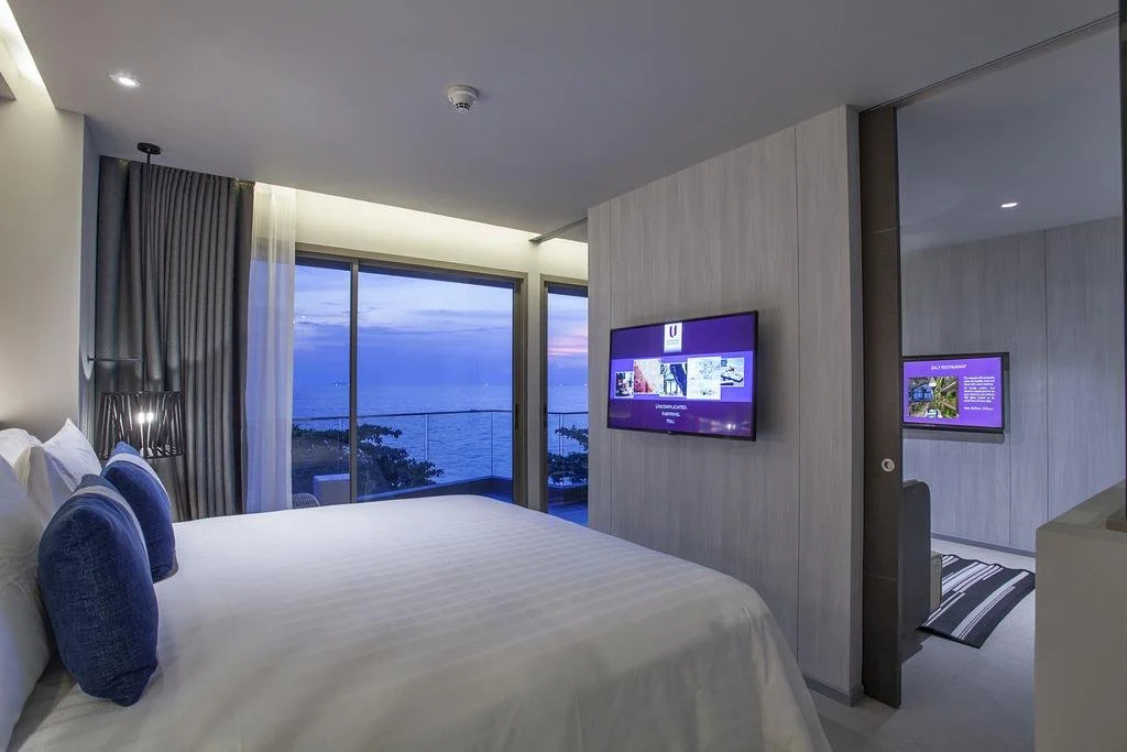 유 파타야의 44개의 객실은 모두 욕조가 구성돼 있으며 발코니, 소파베드 등의 시설을 갖추고 24시간 룸서비스를 제공하는데요. 7개 타입의 객실을 보유하고 있어 선택의 폭이 넓으며 60m² 규모 객실에 프라이빗한 개인 풀장을 갖춘 '비치 프론트 풀빌라'(Beach Front Pool Villa)는 환상적인 바다 전망을 제공해 인기 있는 객실이랍니다.