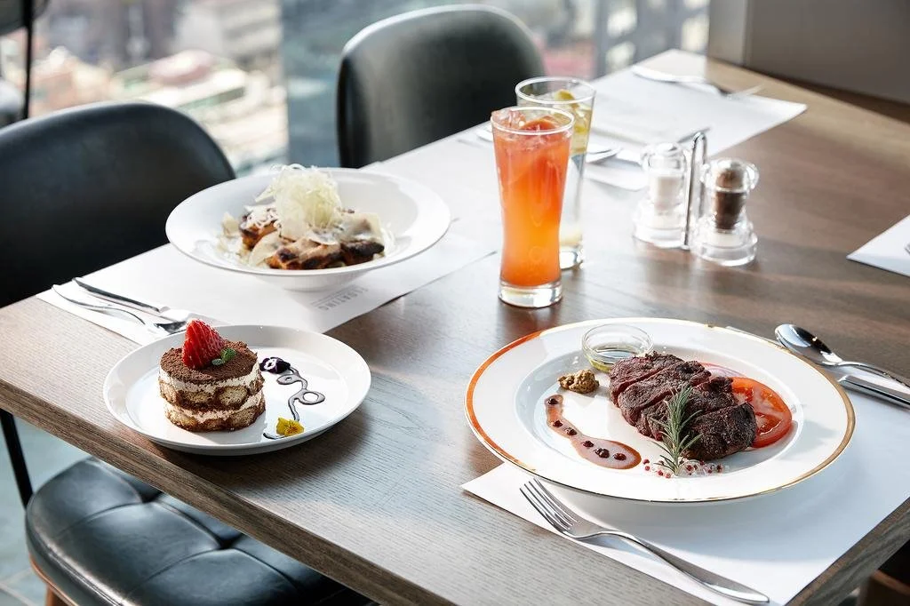 호텔의 20층 레스토랑에는 '플로팅 레스토랑'이 있는데요. 오전 11시부터 오후 10시까지 운영되는 이곳은 점심과 저녁 각기 다른 메뉴를 제공한답니다. 점심에는 스테이크 오믈렛과 뉴욕 치즈버거, 샐러드 등이 주메뉴이고 저녁에는 식전빵, 샐러드, 스테이크, 디저트까지 단계적으로 제공한느 각종 코스 메뉴가 있답니다.