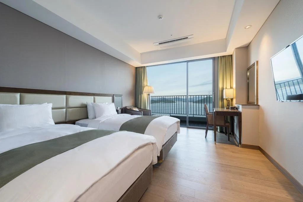 호텔 객실은 총 144객실이며, '수페리어, 디럭스, 스위트'로 구성되어 있답니다. 수페리어 트윈룸은 가장 기본 객실이지만, 객실 내에 통영 바다를 조망할 수 있다는 큰 장점과 욕조까지 갖추고 있는 합리적인 객실이랍니다.
