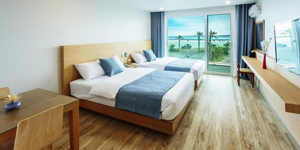 부대시설로 성인풀, 유아풀, 조식당, 실내놀이터, 세탁실, 세미나실, 바비큐장 등이 있는데요. 에머랄드 빛 제주의 아름다운 바다를 호텔 바로 앞에서 감상할 수 있어 힐링이 되는 봄 그리고 가을 리조트!