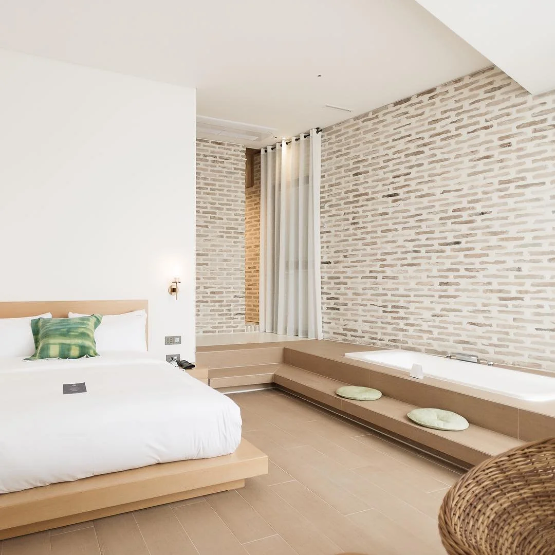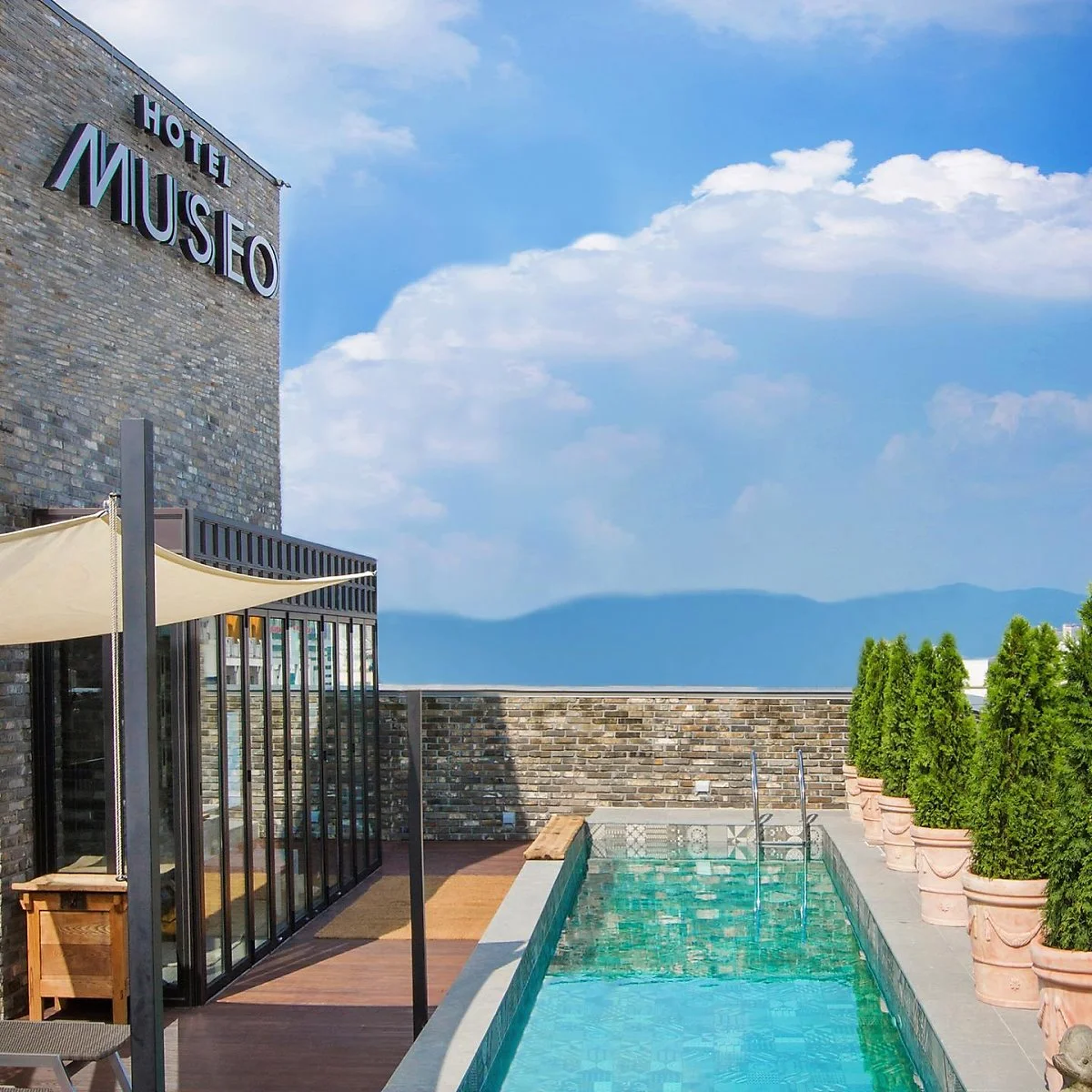 호텔 뮤제오는 일상의 무거움을 내려두고 도심에서의 휴식이라는 컨셉을 가지고 디자인 된 건물의 외관은 클래식하고 모던한 고벽돌로 건축되었는데요. 빈티지한 유럽풍 감성을 최대한 끌어 올리기 위해 1960년대 청도에서 제작된 40만 장의 고벽돌을 직접 국내로 수입하여 시공하였다고 합니다.