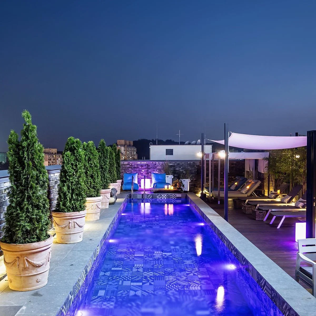 정온한 아침식사와 트렌디한 디너 다이닝이 제공되는 보테가 레스토랑, 1층 로비 아메리카노 라운지, 옥상에 위치한 풀문 수영장 그리고 야외 가든 까지 겸비한 다채롭고 차별화된 서비스를 제공하는 감성넘치는 호텔, 호텔 뮤제오!