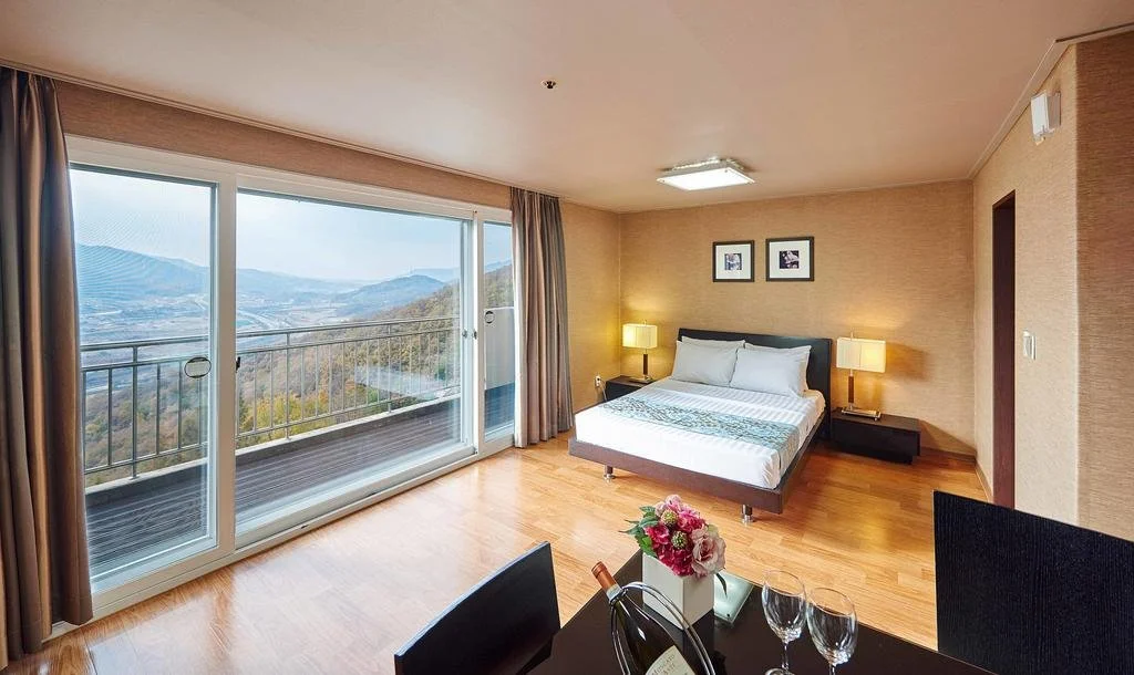 충주호와 단양팔경의 아름다움을 한 눈에 볼 수 있는 총 167개의 객실로 구성되어 있는 켄싱턴 리조트 충주. 은은함을 선사하는 짙은 색 목재 가구와 모던함 디자인이 인상적인 각 객실에는 내 집같은 아늑함을 느낄 수 있는 침구, 조리 기구가 완비된 부엌, 냉장고, TV 들이 구비되어 있습니다 :)