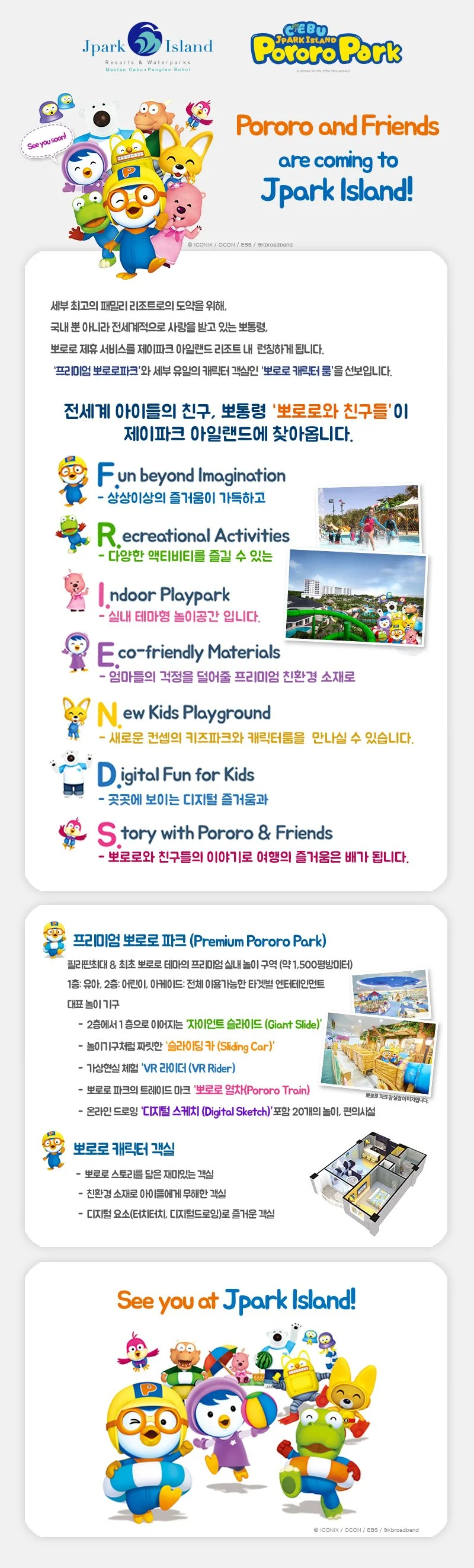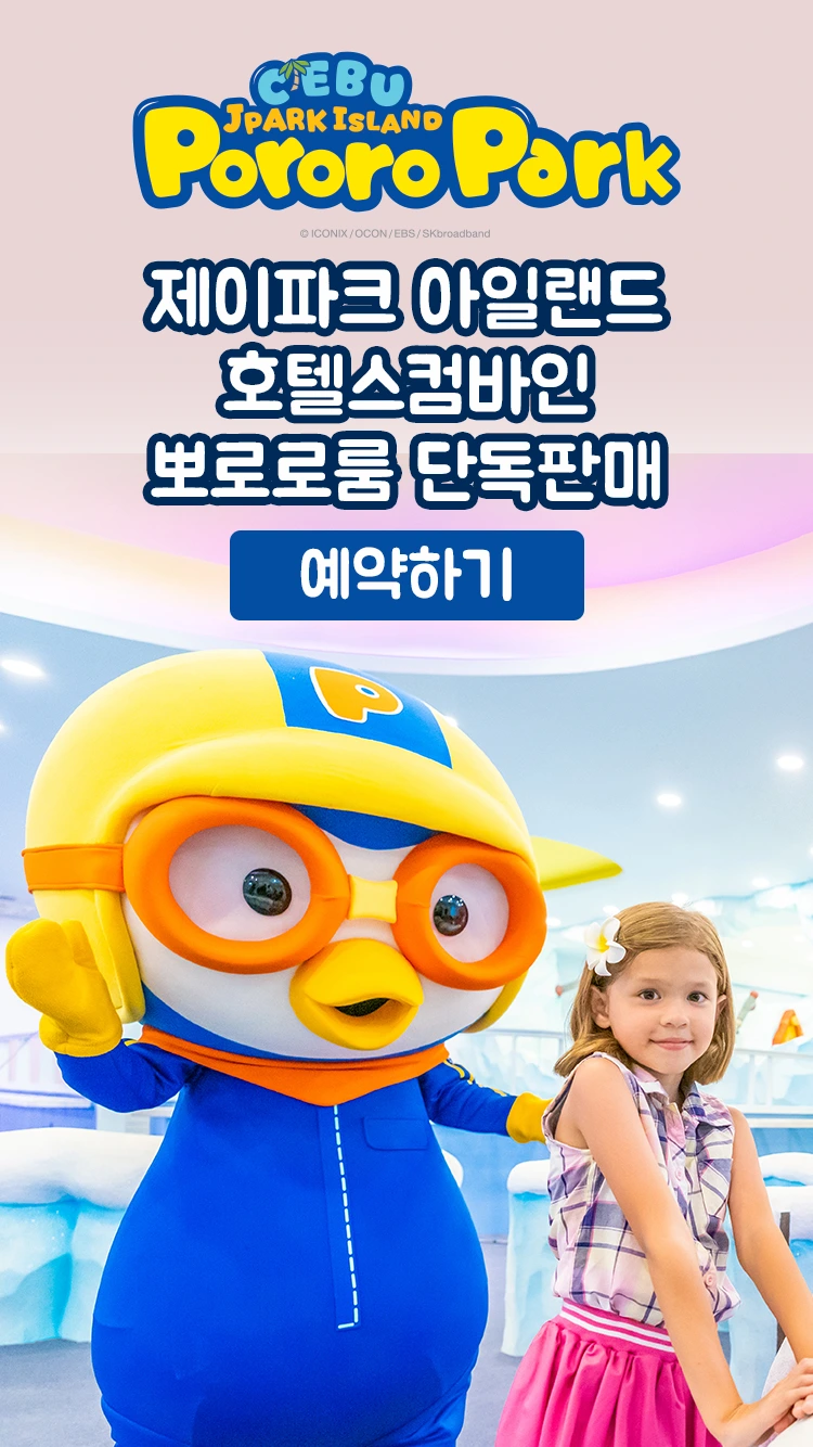 글로벌 인기 캐릭터로 자리매김한 뽀로로를 이제 세부 제이파크 아일랜드에서도 만날 수 있는데요! 최근 뽀로로파크&뽀로로객실을 오픈했는데요. 아이들이 너무 딱 좋아할만한 객실로 아이와 함께 해외여행를 계획하신다면 참조하시면 좋을 것 같아요!