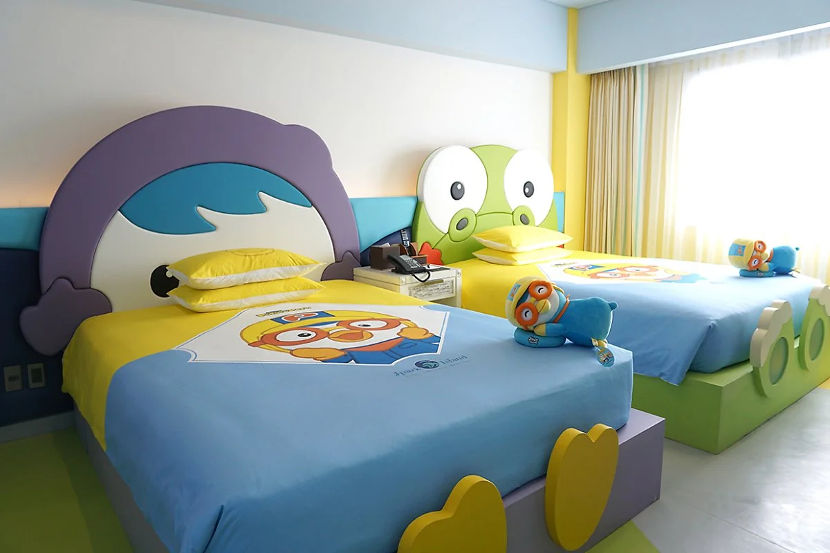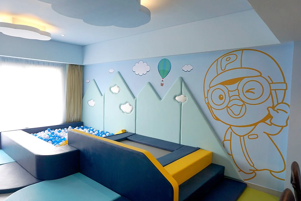 또한, 뽀로로 객실의 벽지, 카펫 등 모든 자재는 친환경 소재를 사용하여 어린이들의 건강과 안전을 생각했는데요. 아이와 함께 워터파크도 즐기면서, 뽀로로룸에서 투숙해보시면 어떨까요?