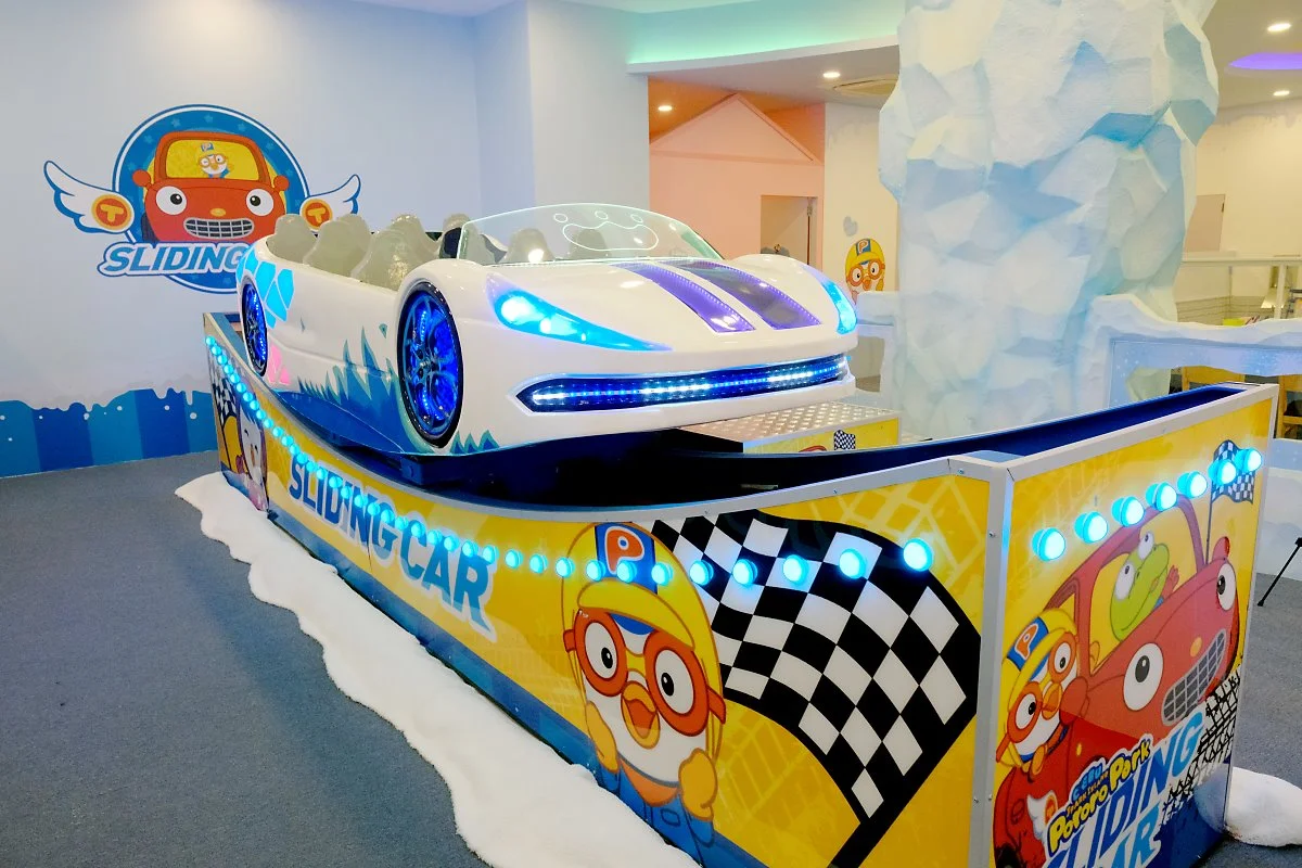 2층에는 가상현실(VR) 라이더, 스윙카, 뽀로로열차, 회전목마 등 다양한 놀이시설이 있으며