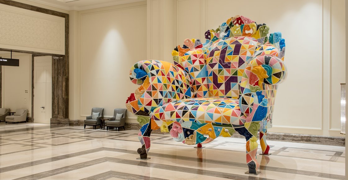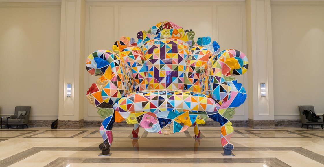 이탈리아 디자인 아트의 거장이라 불리는 알레산드로 멘디니. 한국 전통 공예품인 조각보에서 모티브를 얻어 한국적인 큰 의자가 탄생했다고 해요.
