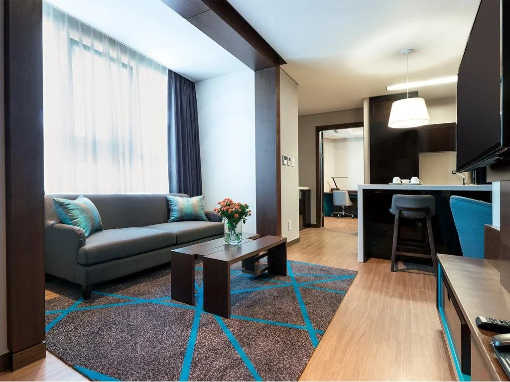해운대에 위치한 레지던스 호텔 시타딘 해운대 부산. 주방과 세탁기 등 각종 생활형 편의시설이 갖춰진 객실과 호텔식 서비스가 접목된 호텔인데요.