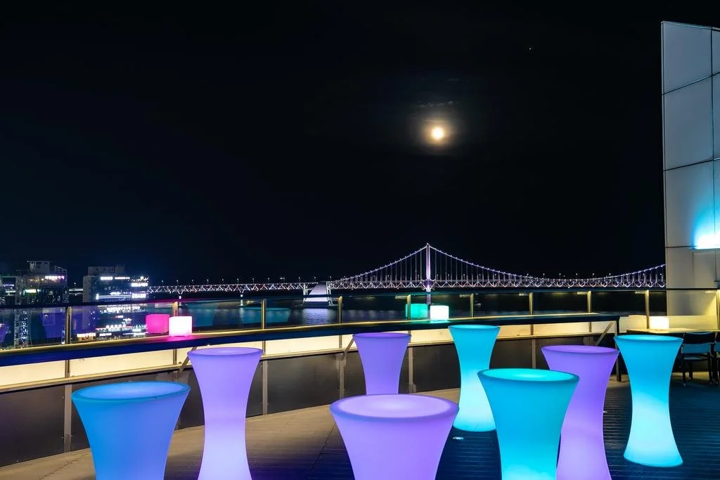 환상적인 야경을 더욱 생생하게 즐기고 싶다면 루프톱에 마련된 스카이데크로 걸음을 넓혀보시면 어떨까요? 라운지에서 계단을 올라 루프톱에 닿으면 잠들지 않는 도시의 야경과 반짝이는 광안대교 풍경이 파노라마처럼 펼쳐진답니다.