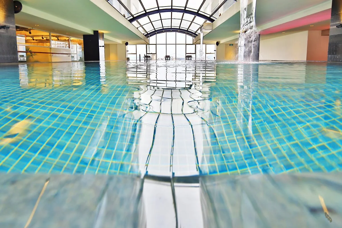 다채로운 부대시설을 살펴볼까요? 날씨에 구애받지 않고 언제나 수영을 즐길 수 있는 ‘실내 수영장’이 있어 동남아의 더위에도 시원한 물놀이를 즐길 수 있답니다. 천장이 투명 유리로 돼 있어 답답한 느낌 없이 개방감을 느끼며 수영을 즐길 수 있답니다.