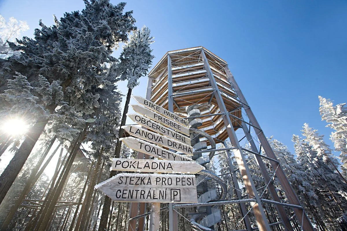 체스키 크룸로프 근처에 위치한 슈마바 마을은 액티브한 휴일을 즐기려는 체코사람들에게도 인기가 많은 곳입니다. 특히 리프노 지역의 트리탑 워크는 체코에서도 가장 유명하고 독특한 어트랙션으로 2012년 모습을 선보였습니다. 약 40미터로 올라가는 동안 아름다운 리프노의 전경은 물론 탁 트인 정상에서는 슈마바 전경과 멀리 알프스를 바라볼 수 있습니다.