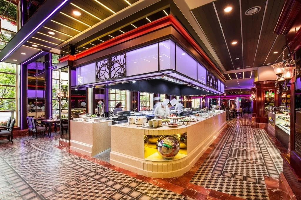 다이닝을 살펴볼까요? 라이브 오픈 키친 스타일의 럭셔리 뷔페 '셰프스 키친', 광동 요리 중심의 고급 중국요리를 즐길 수 있는 곳 '죽림', 라이브 연주를 들으며 즐기는 다양한 요리 '일 라고', 다양한 세계 와인을 느낄 수 있는 곳 '델리', 단체 행사 고객을 위한 카페테레아 '비스타' 등이 있답니다.