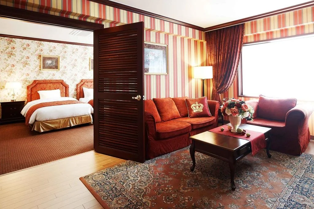 객실은 모던 스탠다드(온돌)부터 프리지덴셜 스위트까지 총 12개의 타입으로 나뉘어져 있는데요. 동양의 온기가 깃들어 있는 한실 온돌방부터 스타라이프 벽지와 플라워패턴의 클래식한 인테리어로 포근함을 선사하는 클래식 패밀리룸 등이 있습니다.