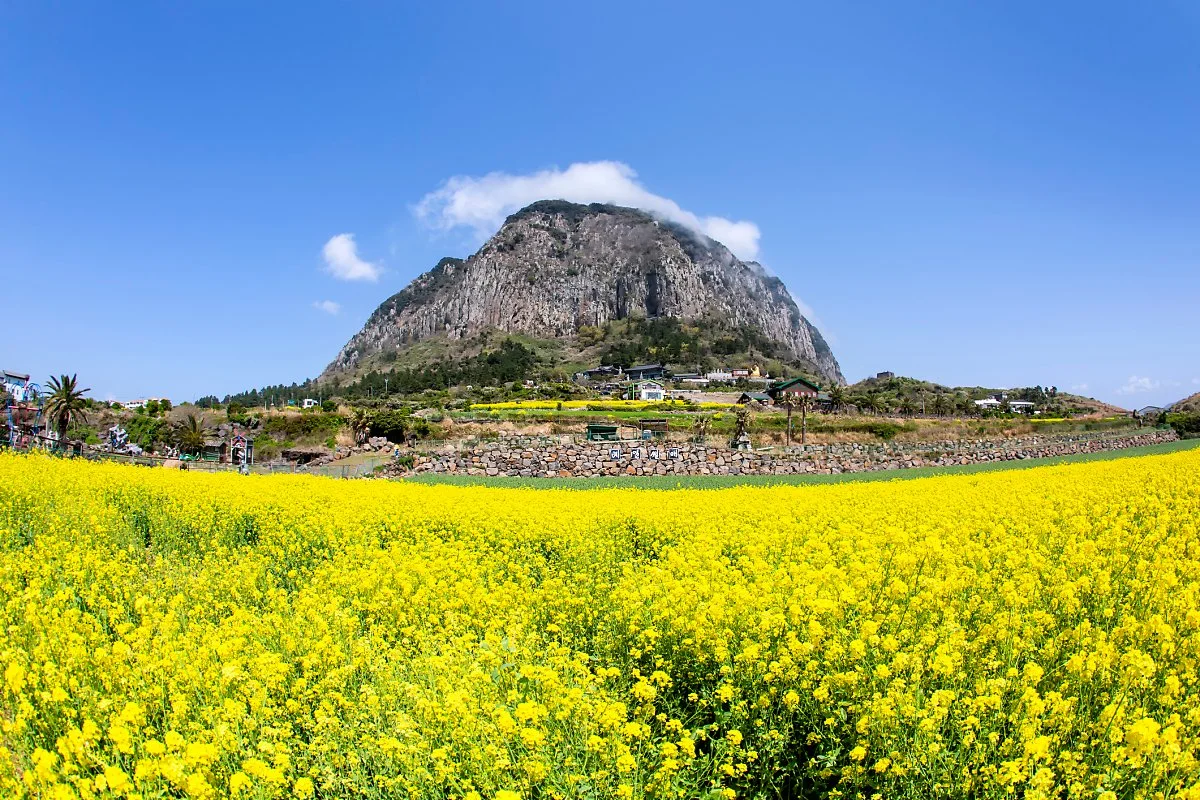 제주하면 떠오르는 성산일출봉 또한 유채꽃명소로 유명합니다.