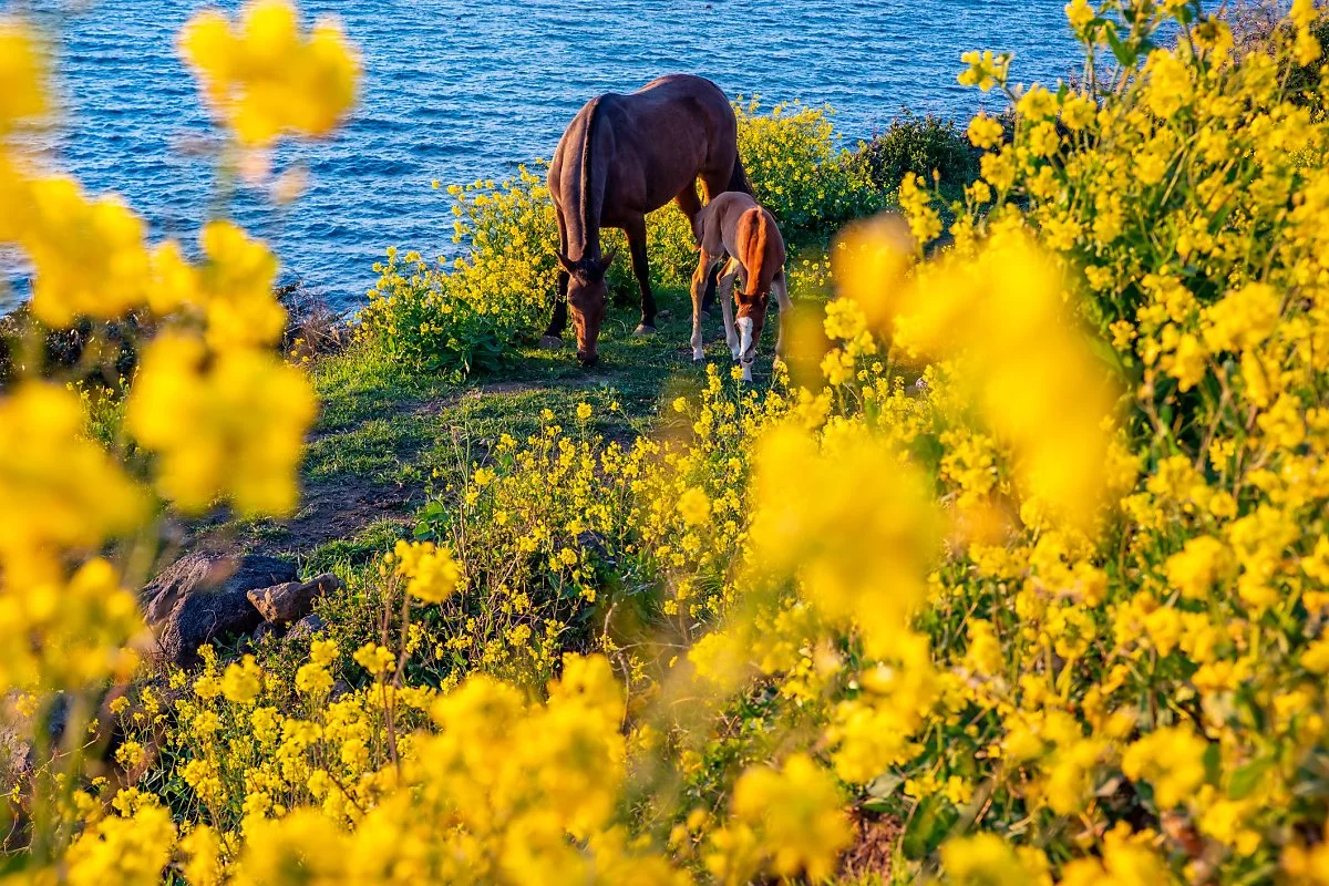 해안선을 따라 한 바퀴 도는 동안 만개한 유채꽃과 어우러지는 돌담,