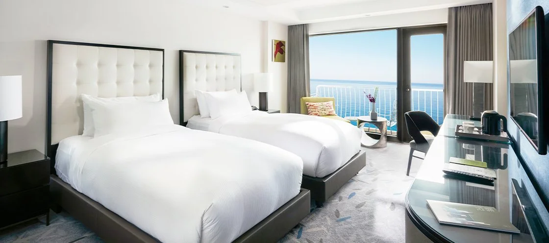 은은한 조명과 어우러진 다크 브라운의 조화를 갖춘 디럭스 오션 테라스룸. 모던하면서도 세련된 최신 트렌드의 인테리어가 돋보이는 객실로 파라다이스만의 고급스러운 감각이 곳곳에 배어 있습니다! 객실 발코니에서 해운대의 햇살을 만끽해보세요!