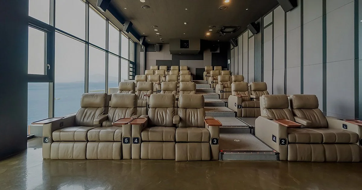 또 다른 특징으로 ‘바다가 보이는 영화관’을 들 수 있는데요. 영화관은 30석 규모 3개관을 갖췄는데, 객석에서 실안 앞바다를 훤히 조망할 수 있답니다. 특히 밤이면 스크린 옆으로 남해안 밤바다가 펼쳐져 색다른 분위기에서 영화를 감상할 수 있답니다.