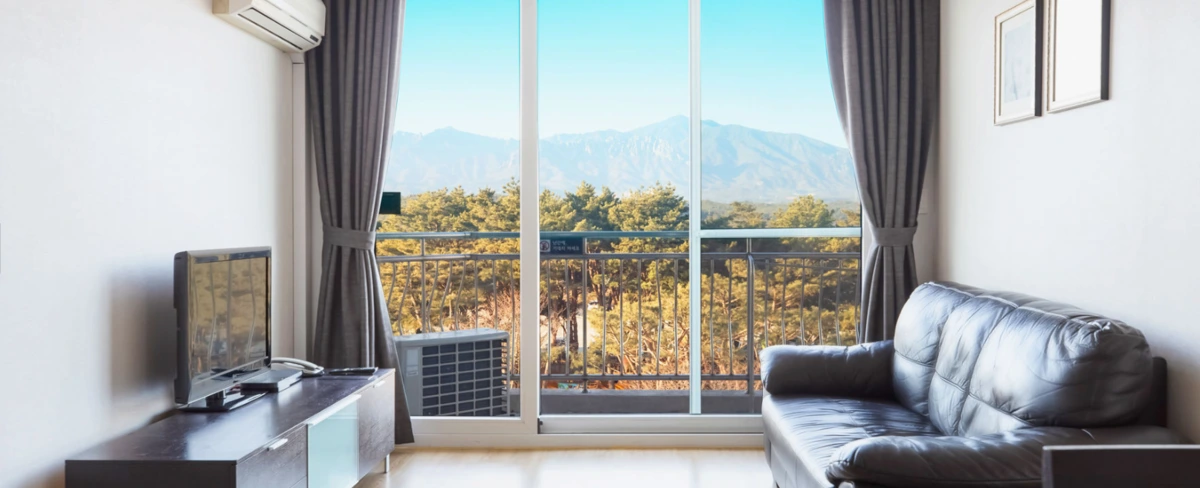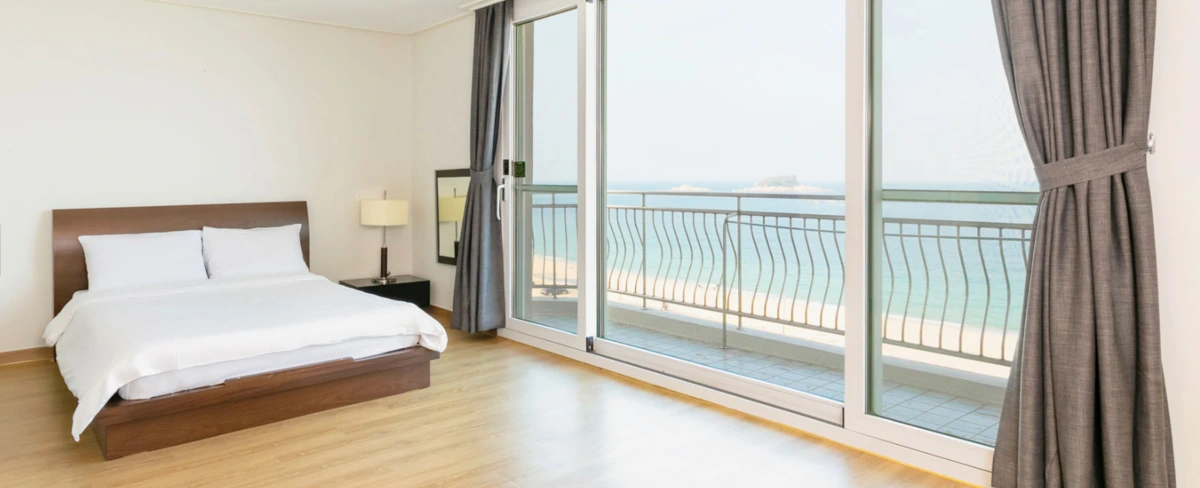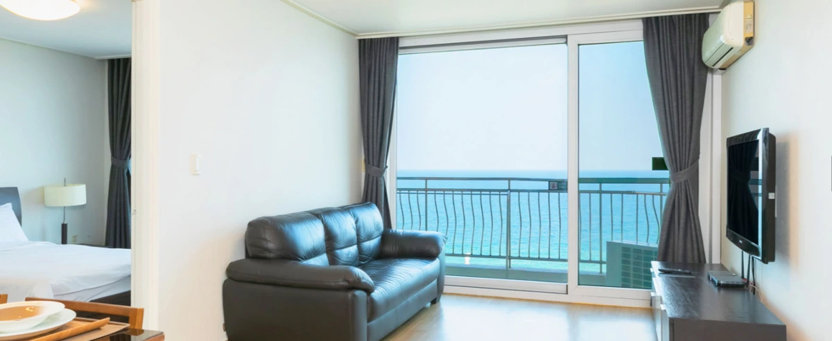 객실 타입은 다양한데요. 먼저 패밀리A 타입은 창문을 열면 동해의 푸르른 바다가 펼쳐지고, 동해의 일출을 감상할 수 있는 원룸 형태로 거대한 설악산의 울산바위가 늠름하게 자리하고 있는 멋진 전경을 감상할 수 있는 객실이랍니다.