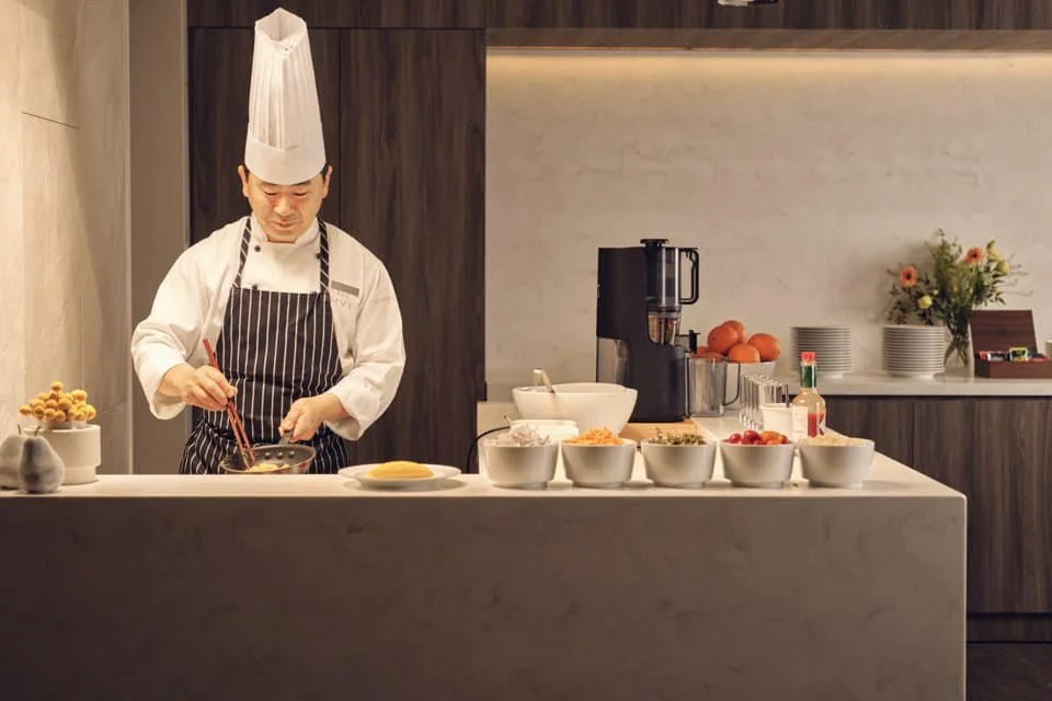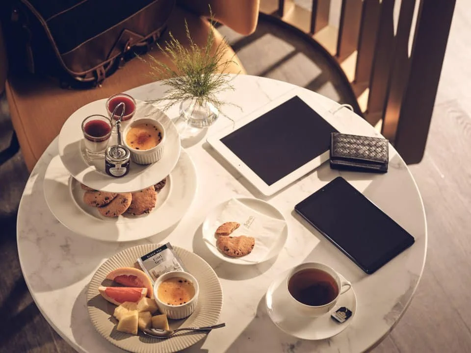 라운지 이용 시 조식으로는 토스트와 크로아상·허브토마토·견과류를 곁들인 콜드디시 메뉴, 소시지·베이컨·오믈렛 등의 핫디시 메뉴 외에 요거트·과일 등 다양하고 신선한 음식을 경험할 수 있답니다.