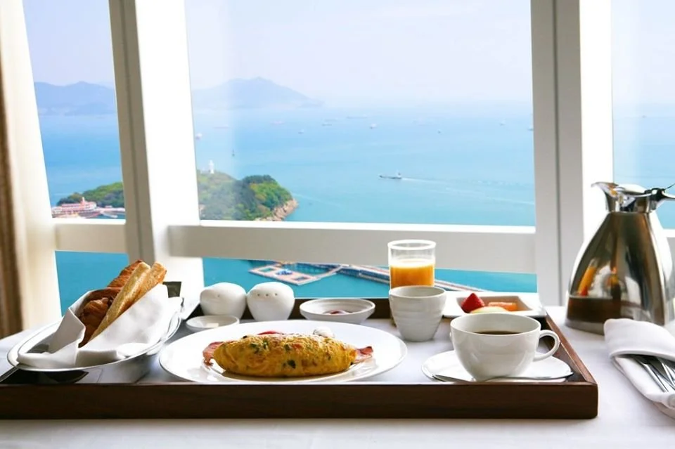 창 밖으로 푸른 바다와 호젓하게 떠 있는 섬이 한눈에 들어오는 소노캄 여수에서는 ‘소노 인 룸 다이닝’으로 객실 테라스에서 바다를 바라보며 식사를 즐길 수 있는데요. 한적하고 여유롭게 한국식, 서양식 조찬을 즐기는 ‘조식 인 룸 다이닝’과 야경과 노을을 바라보며 브래드 버켓, 모듬 치즈를 와인 및 주류와 곁들일 수 있는 ‘하베스트 인 룸 다이닝’도 있답니다. 특급 호텔이 많이 없는 여수 여행에서 밤 바다를 본 후 오션 뷰를 보며 조식을 먹기 좋은 곳이랍니다. 타인과의 접촉 없이 객실에서 오션 뷰를 즐기며 프라이빗한 식사를 하고 싶다면 ‘소노 인 룸 다이닝’을 만나보세요!