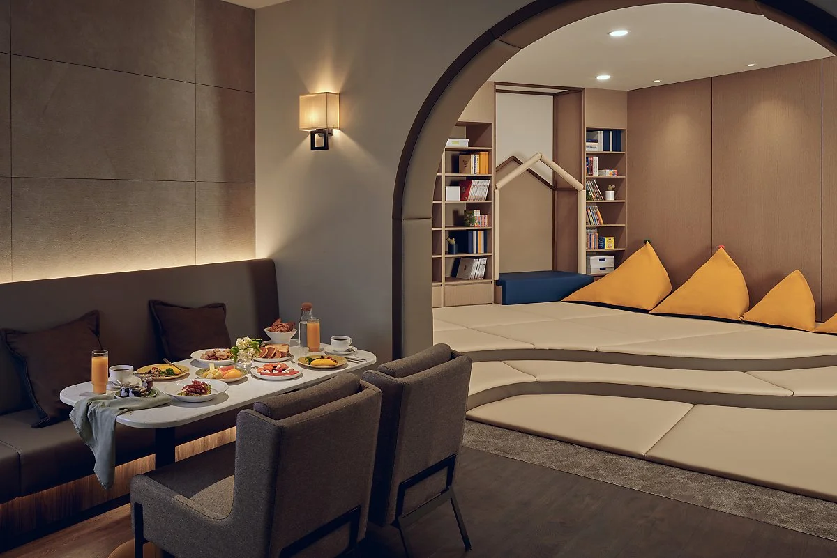 가족이 함께하는 공간인 만큼 아이들을 위한 키즈 플레이존을 별도로 설치했는데요. 키즈플레이존은 폭신한 소프트 타일 카펫으로 마감해 안전하게 이용할 수 있도록 했답니다. ‘더 라운지’에서 온 가족이 함께 여유로운 호텔 라이프를 즐길 수 있다는 점이 매력적이랍니다.
