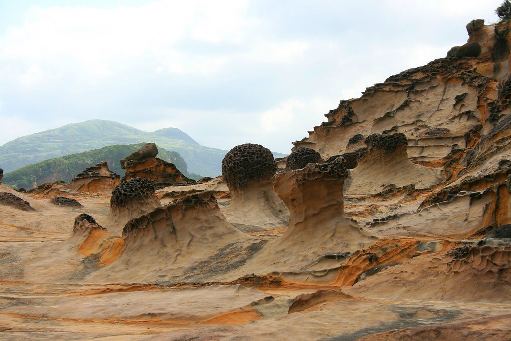 예류 지질공원은 해안가에 기묘한 형상의 바위들이 널려 있어 독특한풍경을 자아내는 대만 여행코스에서 빼놓지 말아야 할 명소예요. 많은 암석들이 아주 오랜시간 동안 침식과 풍화 작용을 거쳐 자연적으로 형성되어 모양이 굉장히 기이한데요. 마치 거대한 버섯이 하늘을 머리로 이고 있는 것처럼 보여 직접 눈으로 보고 싶어 하는 여행객들이 많이들 찾아오고 있어요. 이 곳을 들린다면 거대한 버섯모양의 바위 앞에서 사진으로 꼭 남기도록 해요.