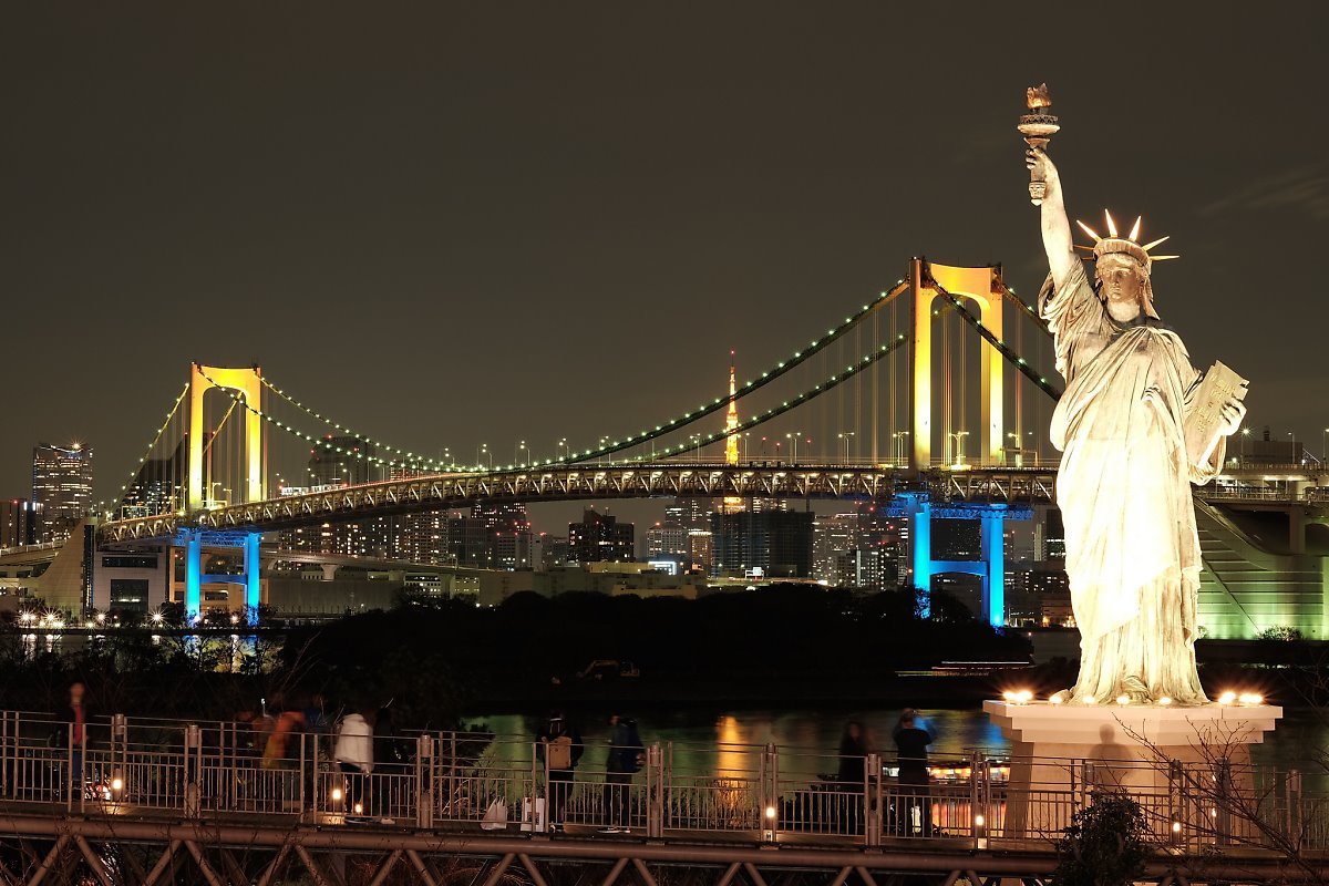도쿄 베이 지역에 세운 거대한 타운으로 모던한 느낌을 갖춘 도쿄여행에선 절대 빠질 수 없는 관광지예요. 계획적으로 조성된 아름다운 경관을 배경으로 쇼핑타운, 대관람차, 후지TV 본사, 박람회장 등 각종 레스토랑과 카페, 호텔에 이르기까지 다채로운 시설이 한 곳에 모여 있어요. 오다이바에서 여행하며 멋진 조각상들을 관람할 수 있는 것도 매력 포인트인중 하나죠. 또한 도쿄 도심과 인공 섬인 오다이바를 연결하는 다리인 레인보우 브리지는 밤에 보는 것이 훨씬 아름다운데 하얗게 빛나는 다리 조명과 주변 건물들에서 쏟아지는 불빛들이 바다 위의 유람선과 어우러지면서 멋진 경관이 연출되는 곳이예요.