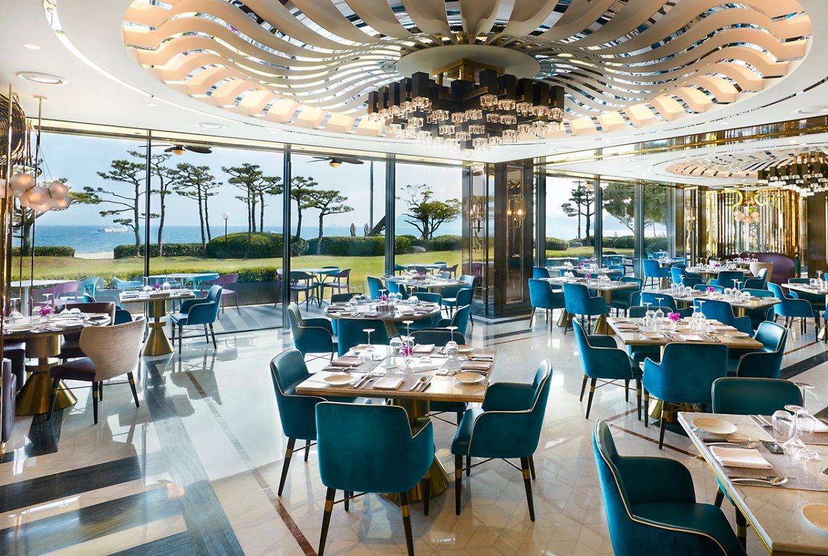 호텔 본관 1층에 자리한 국내 최초 7성급 럭셔리 올데이 다이닝 레스토랑 <온 더 플레이트>. 해운대 바다의 경치를 감상하며 미식을 즐기실 수 있는데요. 전 섹션이 라이브로 운영되는 올 오픈 키친으로 하와이안 스타일, 중국, 해산물, 딤섬, 디저트 등 마스터 셰프들이 선사하는 세계 다양한 요리는 맛보실 수 있는데요.