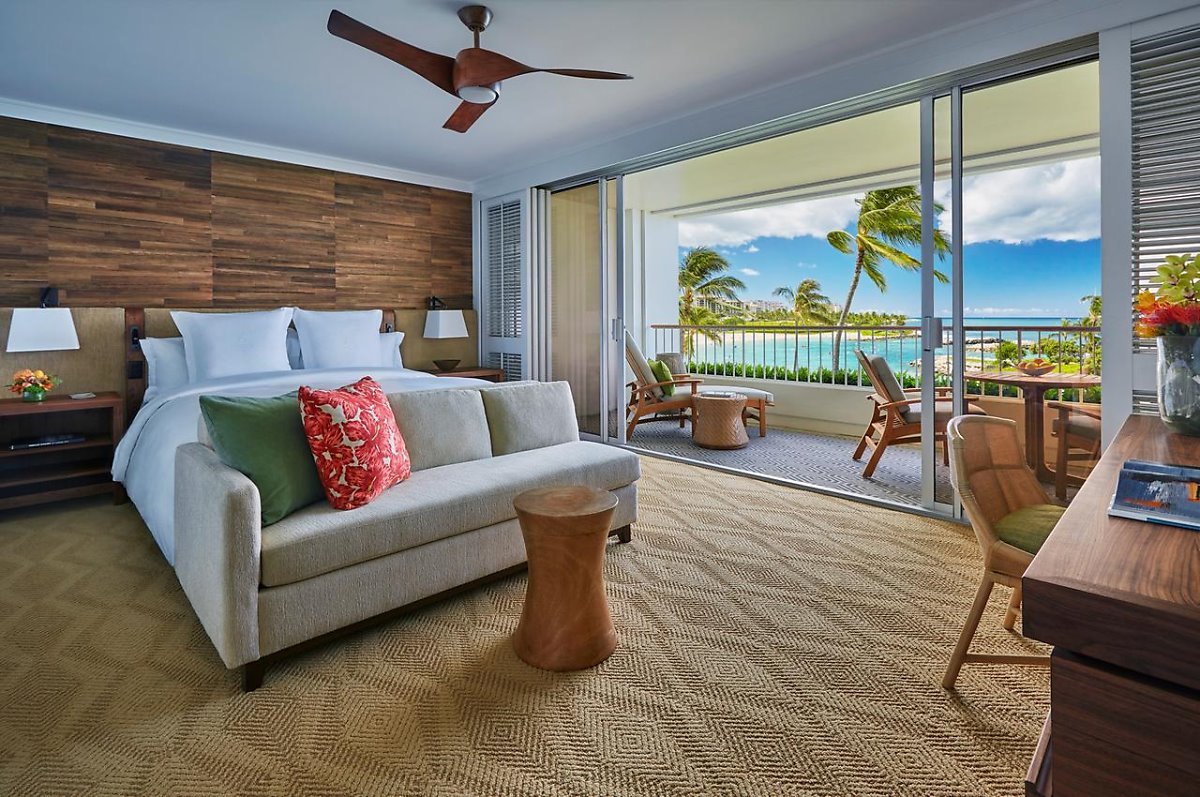 371개의 객실 중, 일부 객실 유형에서는 전용 발코니에서 탁트인 태평양 바다 전경을 즐기실 수 있습니다. 또한, 하와이안 원목과 바나나 잎으로 장식되어 있어 정통 하와이안 스타일을 느끼실 수 있습니다.