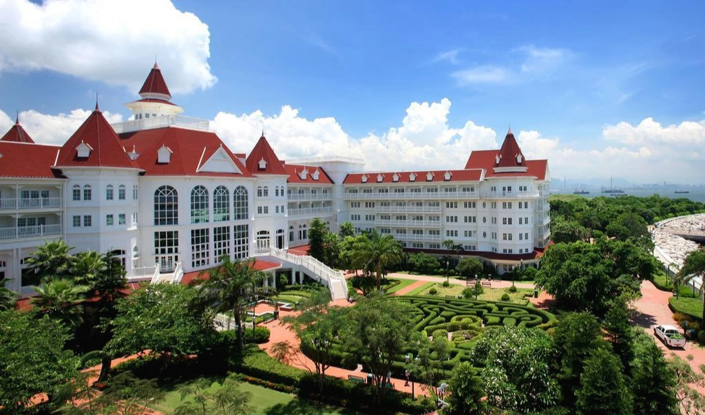 란타우섬에 위치해 있는 홍콩 디즈니랜드 호텔, 동화 속 왕국을 연상시키는 궁전같은 외관을 자랑합니다. 투숙하며 푸른 잔디밭을 따라 조깅을 하기도 좋고 가든 미로에서 게임을 즐기기에도 좋답니다.
