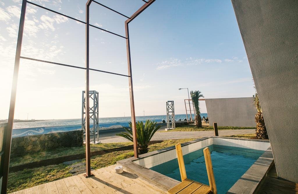 아름다운 해변의 제주 구좌에 위치한 아쿠아 뷰티크. 봄 여름 가을 가동되는 개인 풀과 100% 바다 전망을 갖춘 아름다운 숙소인데요.