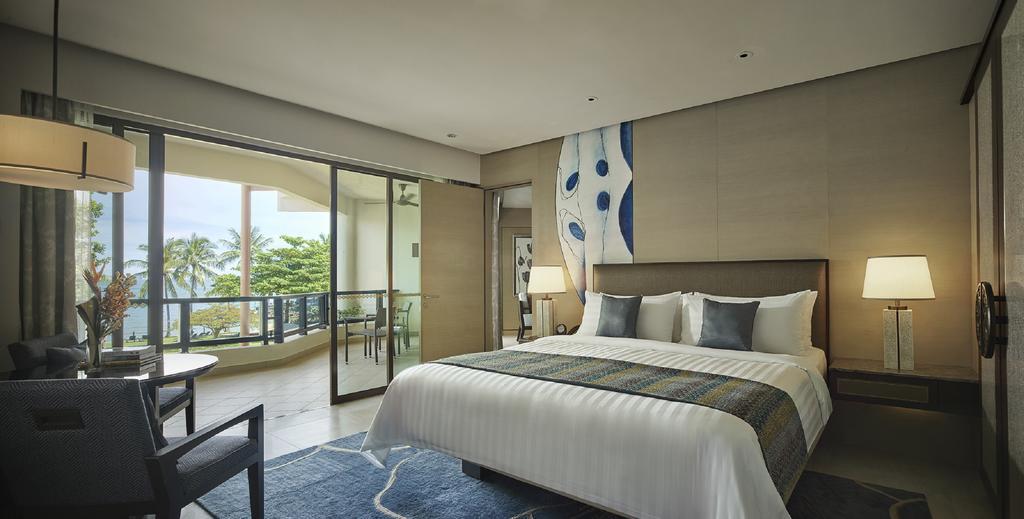 탄중 윙과 키나발루 윙, 두 건물로 이뤄져 있으며 스위트룸을 비롯하여 클럽 라운지를 이용할 수 있는 클럽룸 등 다양한 객실이 준비돼 있는데요. 전망이 아름답기로 유명해 정원과 바다, 섬 등을 객실 내 발코니에서 내려다 볼 수 있답니다. 모든 객실은 보르네오의 전통적 색감과 질감을 바탕으로 현대적인 화려함을 가미했답니다.
