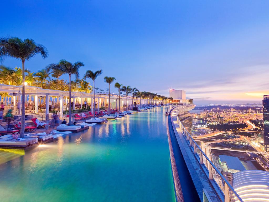 하늘과 경계가 맞닿은 바다의 수평선이 인상적인 인피니티풀의 마리나 베이 샌즈. 마리나베이의 탁 트인 전망과 마천루가 어우러진 야경을 바라보며 수영을 즐길 수 있는 공간인데요.