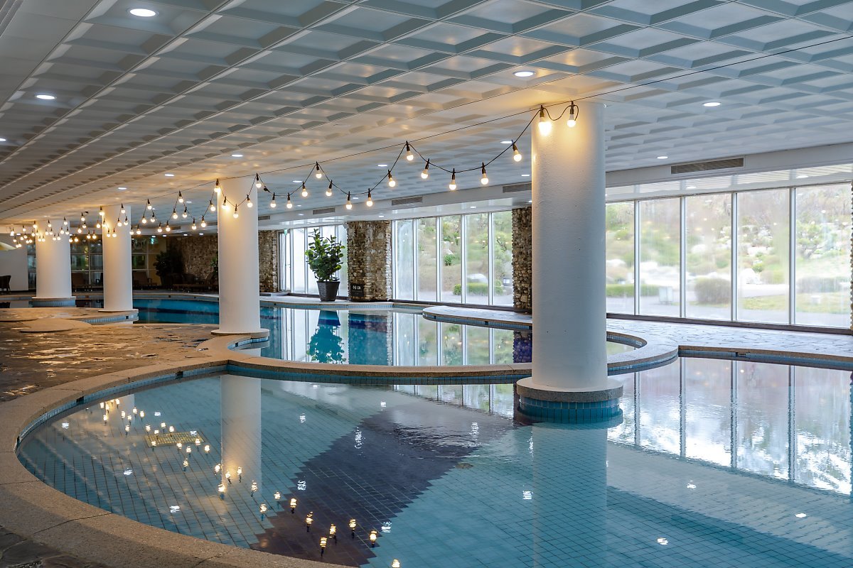 자연과 하나되는 사계절 온수풀 – ‘실내 수영장’ 오리엔탈 정원이 한눈에 보이는 사계절 온수풀, 실내 수영장입니다. 벽면이 통유리로 되어 있어 탁 트인 야외 전망을 만끽하며 수영과 휴식을 즐길 수 있는 공간입니다. 매일 관리되는 실내 수영장은 최상의 수질을 제공하며, 구명조끼, 안전요원 등이 있어 안전하게 즐길 수 있습니다. 스트레스도 풀리고 건강한 몸을 만들 수 있는 실내 수영장에서 건강하게 수영을 즐겨 보세요!