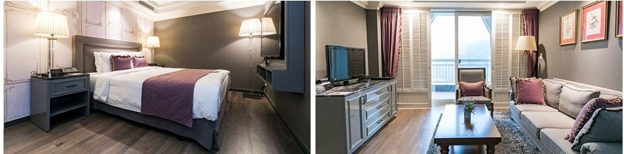 객실은 모던 스탠다드(온돌)부터 프리지덴셜 스위트까지 총 12개의 타입으로 나뉘어져 있는데요. 동양의 온기가 깃들어 있는 한실 온돌방부터 스타라이프 벽지와 플라워패턴의 클래식한 인테리어로 포근함을 선사하는 클래식 패밀리룸 등이 있습니다.