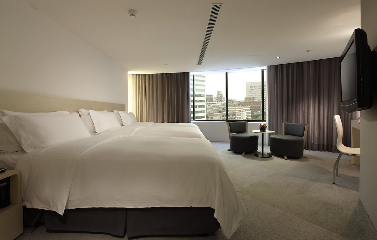 ⓒ 시저 메트로 타이베이슈페리어, 디럭스 패밀리, 스위트 등의 총 750개의 객실로 구성되어 있습니다. 타이베이 도심을 감상하실 수 있으며, 폭신한 침구와 블루투스 스테레오 등이 마련되어 있어