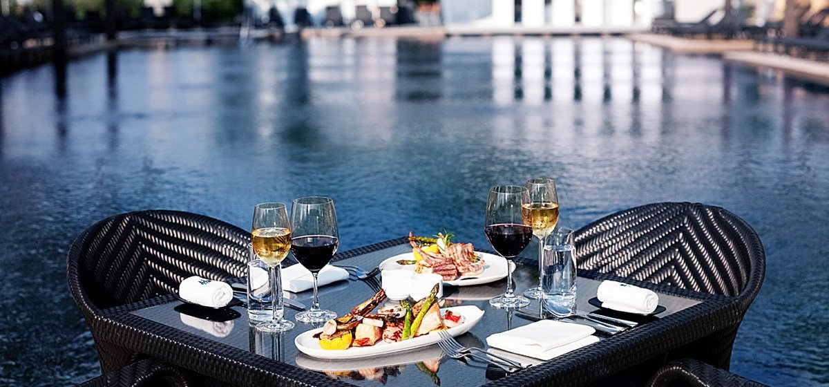 ⓒ BANYAN TREE CLUB&SPA TREE최근 화사한 에메랄드 톤으로 리뉴얼 되었으며 쾌적한 온도로 유지되는 온수풀 운영으로 더욱 오랫동안 야외 수영을 즐길 수 있습니다. 야외 키친에서는 간단한 스낵과 단품 메뉴를, 저녁에는 하늘이 노을로 물드는 전경이 펼쳐진 풀사이드에서 바베큐 뷔페를 선보입니다. 해외 반얀트리의 풀빌라를 그대로 옮긴 듯한 오아시스 수영장에서