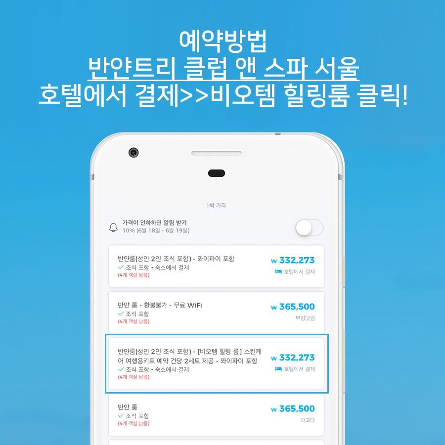 호텔에서 결제>> 비오템 힐링룸 예약시