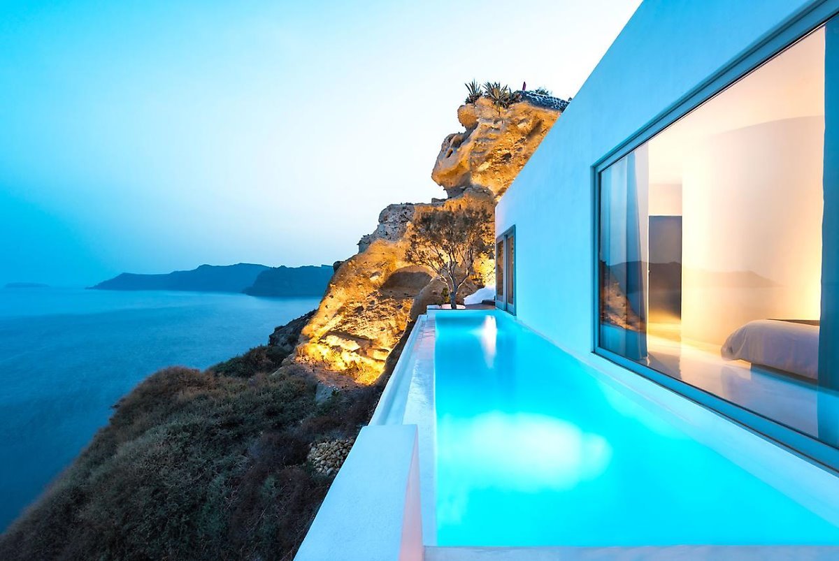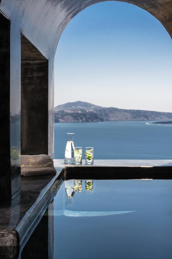 객실마다 자쿠지가 있으며 끝없이 펼쳐진 에게해와 칼데라 뷰 전망을 자랑한답니다. 가장 아름다운 일몰을 감상할 수 있는 호텔로 특히 허니무너들에게 강력 추천합니다.