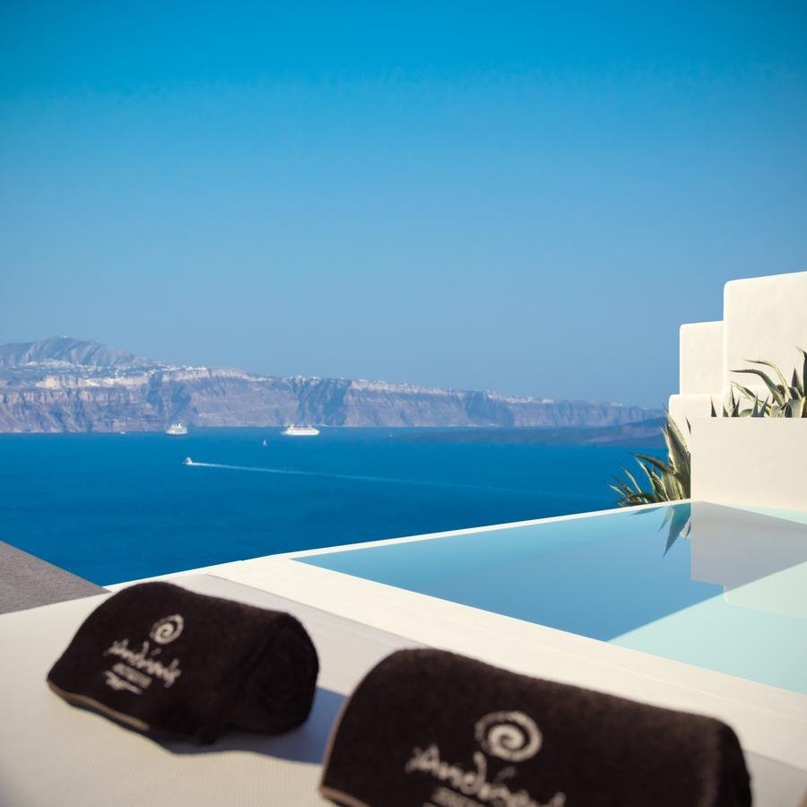 이 호텔은 산토리니 대표 럭셔리 호텔그룹 안드로니스로 고객이 호텔 근처에 도착하면 그곳에서부터 객실까지 스텝들이 직접 여행용 가방을 들고 이동하며, 가까이 위치한 안드로니스 계열 호텔로 이동할 때도 동일 픽업 서비스를 제공하는 등 만족도가 높은데요.