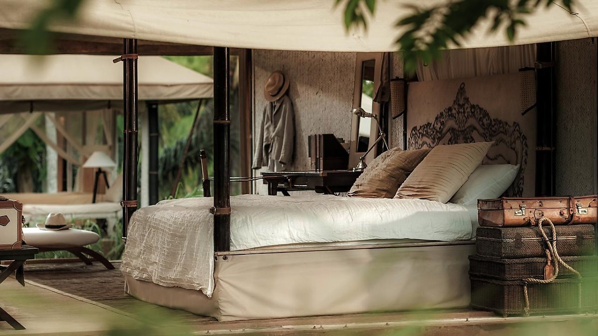 더 베이지는 크메르 제국 수도의 마지막 유적군인 앙코르 톰에 위치한 럭셔리 텐트형 방갈로로, 이국적인 분위기를 만끽할 수 있는 호텔인데요.